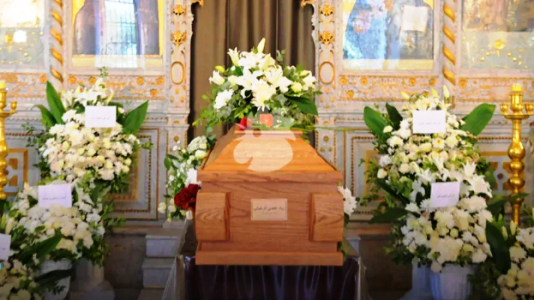 الصورة : نعش الأيقونة زياد الرحباني في كنيسة رقاد السيدة في المحيدثة بكفيا في محافظة جبل لبنان