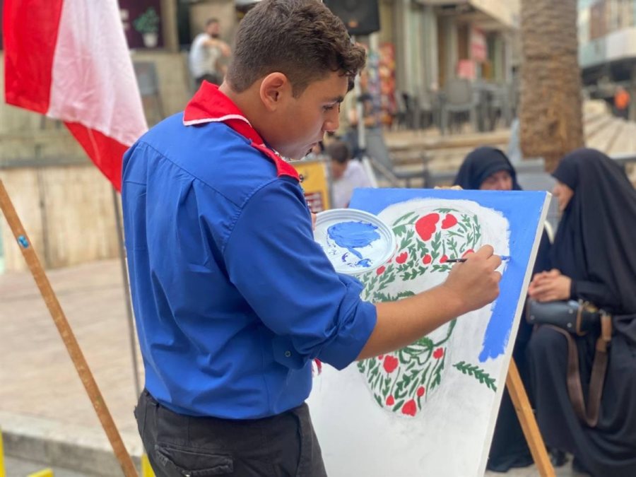 كشافة الإمام المهدي نظمت مرسما فنيا بذكرى الشهيدين نصر الله وصفّي الدين في سوق صيدا التجاري