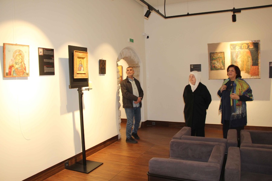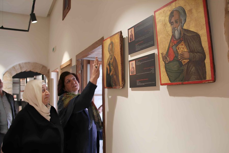 وكان في استقبال السيدة الحريري مديرة المتحف السيدة ألفت البابا ، حيث جالت برفقتها في المعرض الذي يضم ستين أيقونة بيزنطية وملكية، قامت بترميمها الفنانة التشكيلية لينا كيليكيان، بدعم من "مؤسسة الحريري" وضمن مشروع ترميم كاتدرائية القديس نيقولاوس الأثرية والذي نفذته المؤسسة بهبة من الرئيس سعد الحريري، حيث تم ايداع هذه الأيقونات مؤقتاً في متحف قصر دبانة ريثما يتم نقلها الى الكاتدرائية .