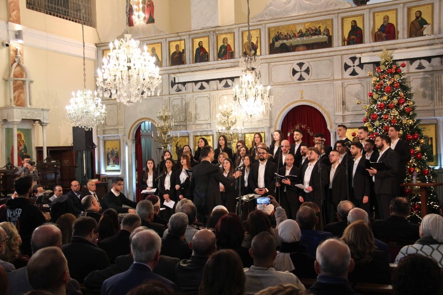 بعد ذلك قدمت جوقة " وتر " باقة من الأغنيات والترتيل الميلادية التي عاش معها الحضور أجواء مفعمة بفرح الميلاد وما يحمله من معاني المحبة والسلام. كما قدمت الجوقة ترتيلة خاصة بعنوان" دقت جراس الكنايس".