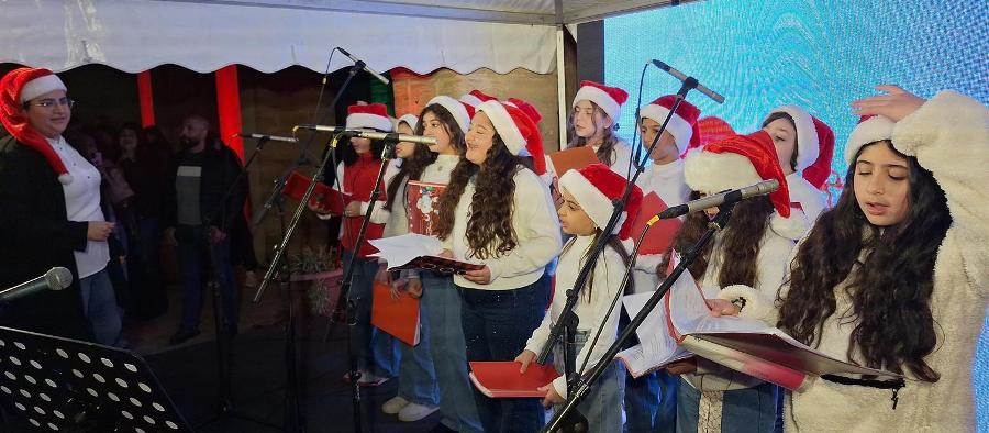 ثم قدمت جوقة مدرسة الفنون الإنجيلية الوطنية للبنات والبنين في صيدا ترانيم ميلادية، فيما قدمت المعلمة بيترا منصور والطالبة سهاد جرادي أغنيات ميلادية من وحي المناسبة.